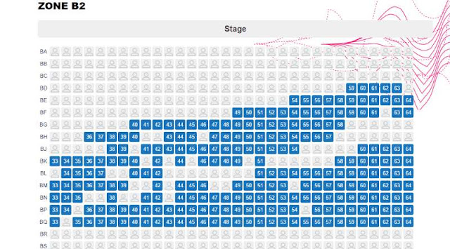 2019年2月2日开票日,我一整个早上都守着我的QQ群。官博说尽量选A2,B2和C2的区域,但是在等待开票给外国人的时候,就听到QQ群里的人说A1和A2区基本上是没希望了。我打开电脑进入网页看,发现B2区很多票也没有了。所以在还没开放给外国人的时间的时候,我就在网上呆着,选好了B2区BL排的座位,等待时间到直接过账。